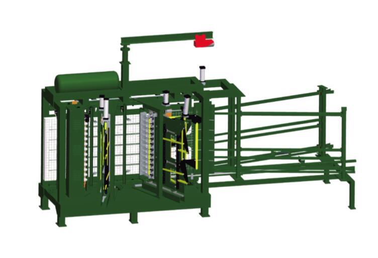 3D板材成型設備主要有CH-V型成型機作為主機,CH-V型成型機采用PLC觸摸屏控制,在原CH_V型整卷絲斜插絲基礎上,改變了插絲方式,將預先調直切斷的鋼絲放入插絲斗內進行斜插絲。優點:插絲厚度可達到200mm(芯板厚度)。該機組為立式焊接形式,與臥式焊接機組相比具有操作、維修方便,產品外觀平整,漏焊率低等顯著特點。